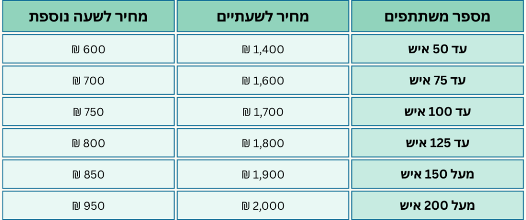 - מחיר שעתי למפעיל 100 ₪